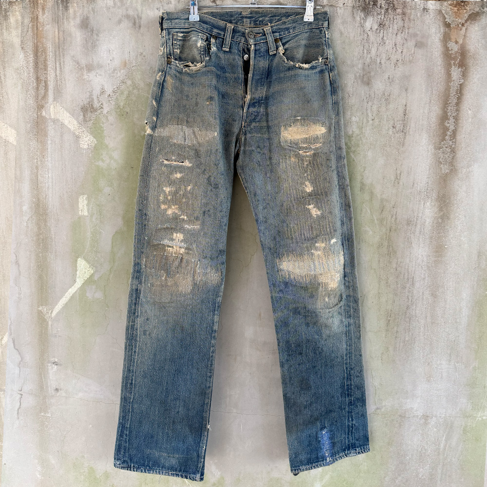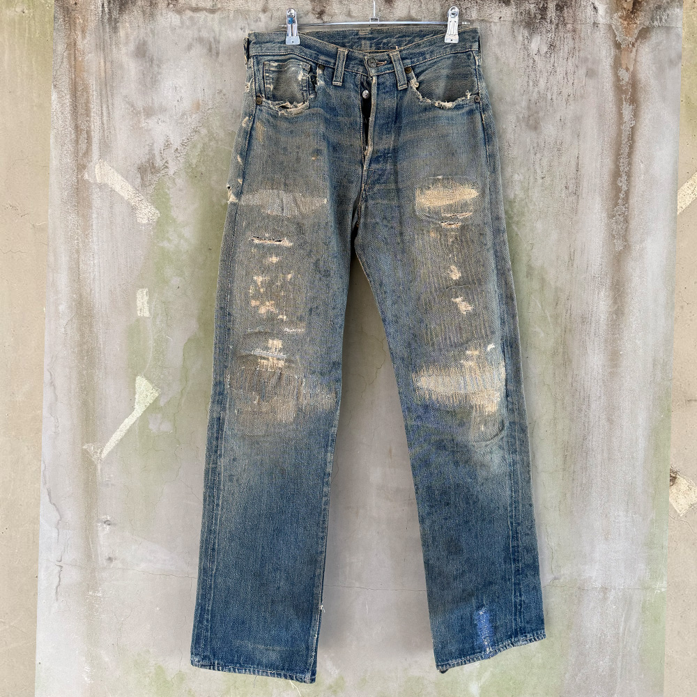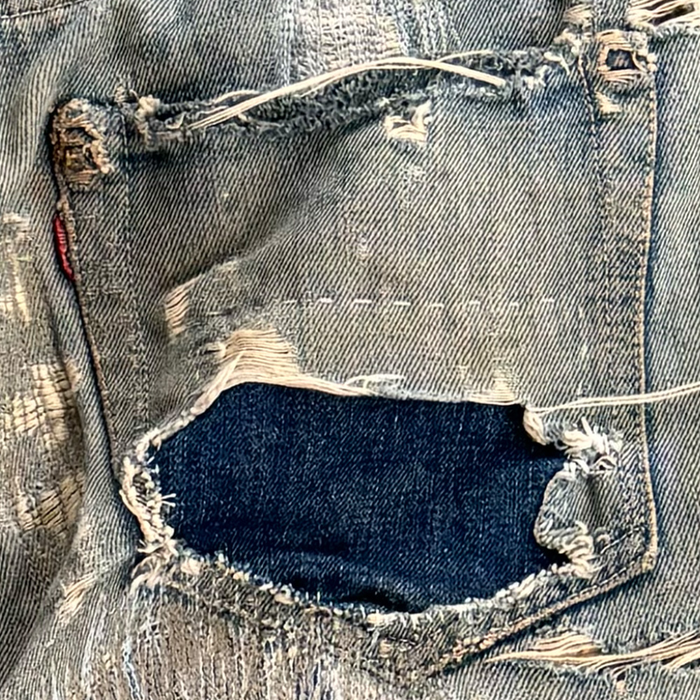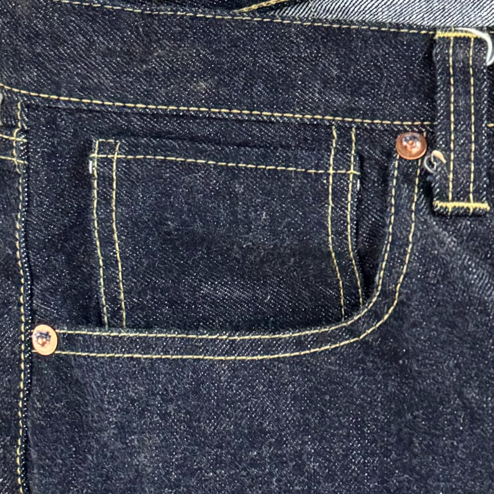 1942年、戦時下のアメリカで誕生した特別な存在 ― 501SXX、通称“大戦モデル”。資材統制の中で簡素化を余儀なくされながらも、時代を超えて語り継がれる独自の美しさを宿した一本です。ドーナツボタンや粗野なムラ糸デニム、ペンキで描かれたアーキュエイトステッチなど、当時ならではの不均一さは、現在では決して再現できない偶然の産物でした。今回デュードバンチでは“最初の30人の勇者の1人”からご提供いただいた貴重な実物サンプルのシルエットをトレースし、栗原氏の所有する大戦モデルと合わせて細かいディテールを一から構成することで、この歴史的モデルにアプローチしました。穿き込むほどに深まる表情は、コレクションピースとしてはもちろん、日常に取り入れても圧倒的な存在感を放ちます。唯一無二の個性を纏ったデュードバンチ製大戦モデルをご堪能ください。