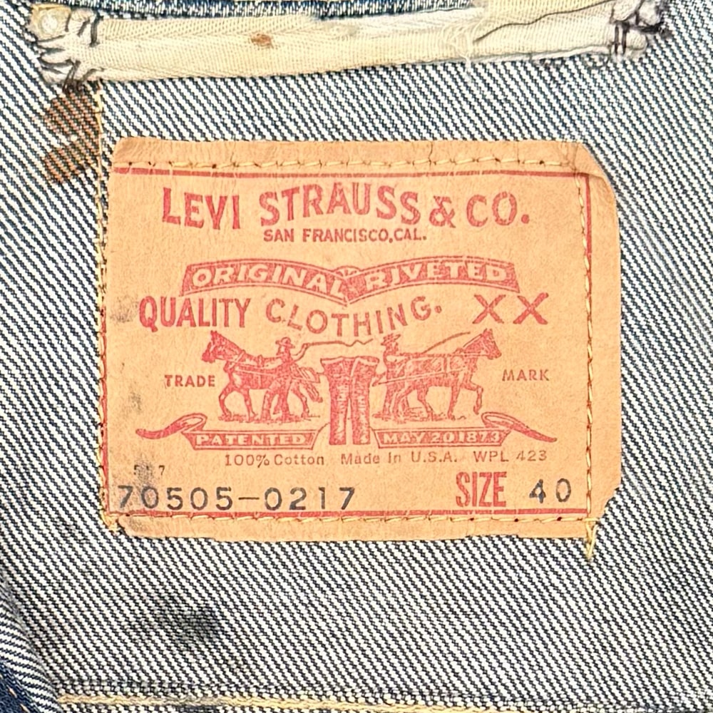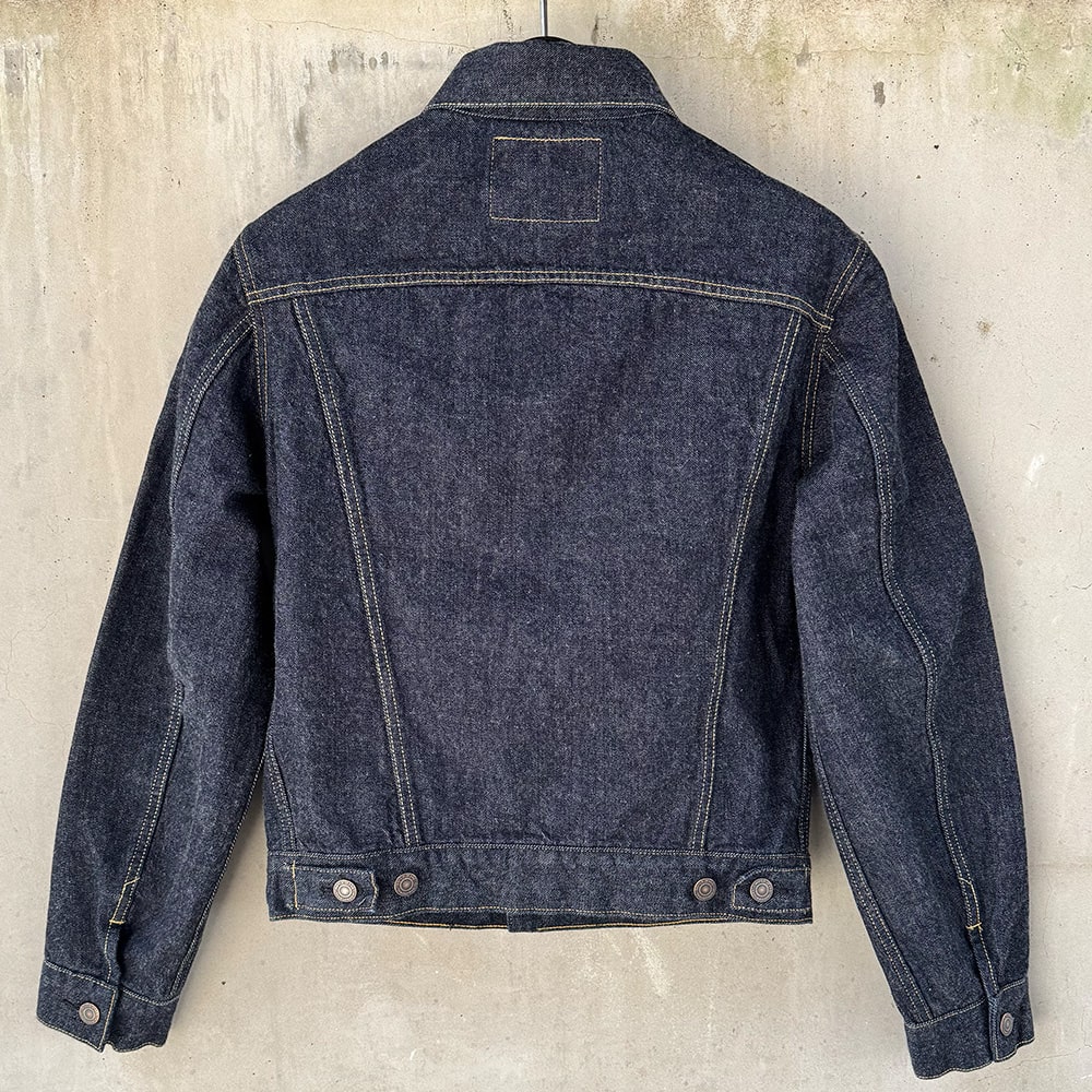 - サンプリング元となったリーバイスの3rdと4th移行期モデルは、1966年頃の制作と推定されます。生地は確実に4thのものですが、パターンは3rdモデルを使用した仕様となっています。さらにパッチは、大型の70505/557ダブルネームが付されているのが特徴です。この個体には興味深いディテールが数多く見られ、今回はそれらを忠実に再現しました。リーバイス特有の大らかさと、生産効率を優先したために許された工場ごとの仕様差異を感じ取っていただけるジャケットとなっています。