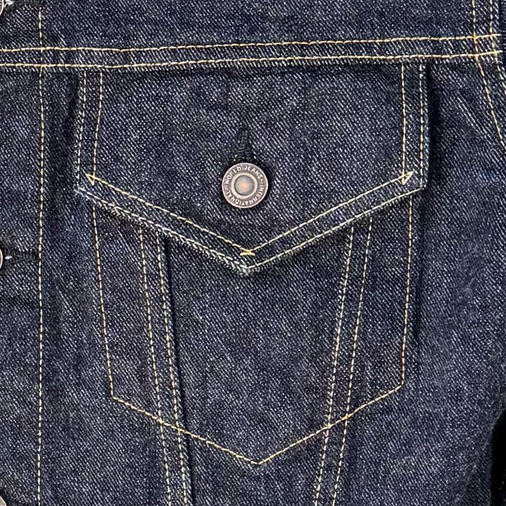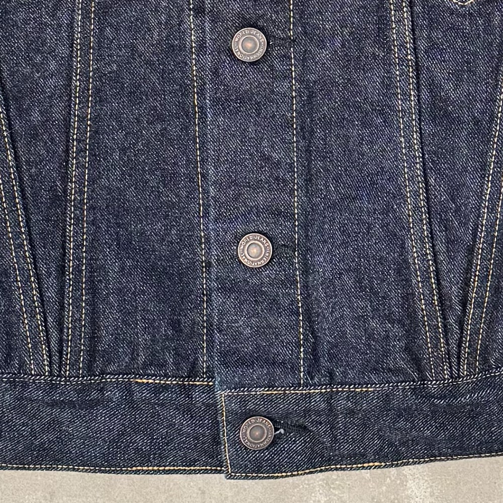 - 防縮加工が施された品番には、当時のリーバイスのルールとして銅色のボタンが使用されていたようです。今回のモデルでは防縮加工は施しておりませんが、3rdタイプの基本仕様として銅色ボタンを採用しております。また、将来的にはDUDE BUNCHオリジナルのボタンを導入することを検討しており、そこも密かなこだわりのポイントとなっております。