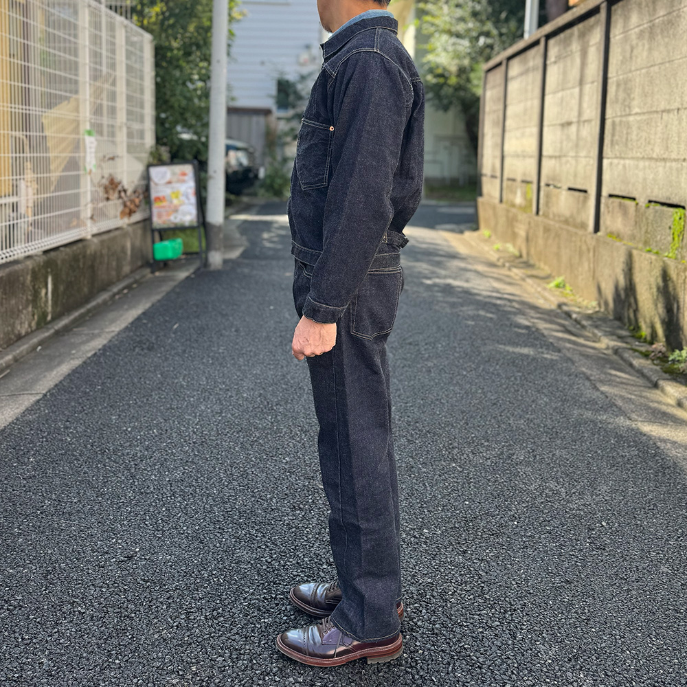 セカンドサンプル時点の着用イメージです。パンツはほぼイメージ通りです。ジャケットは着丈を2cm短くし、裾まわりを5cm大きくし、ファーストモデル特有の裾の緩さを狙っています。